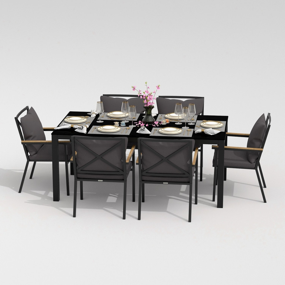 Обеденная группа CANA FESTA plus каркас карбон / стол стекло 180 / ткань антрацит