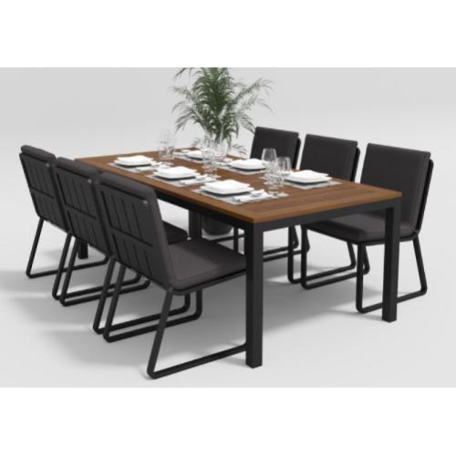 Цвет: каркас темно-серый / подушки черные / столешница тик