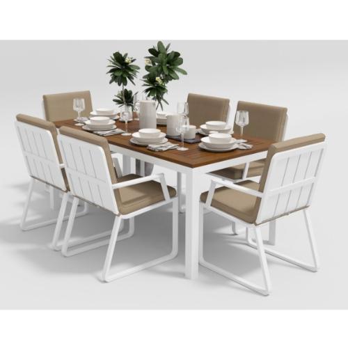 Цвет: каркас белый / подушки бежевые / столешница тик