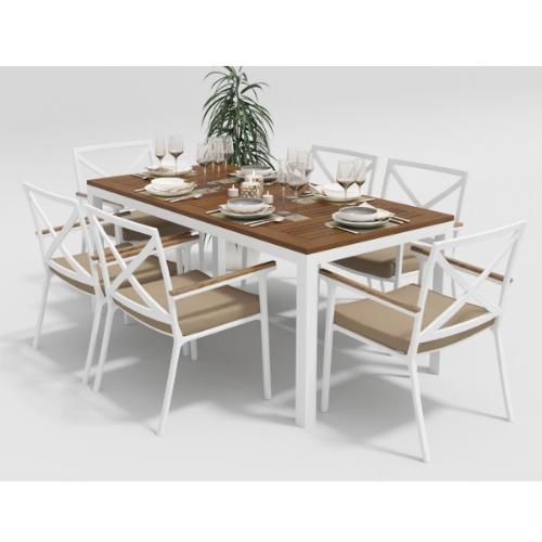 Цвет: каркас белый / подушки бежевые / столешница тик