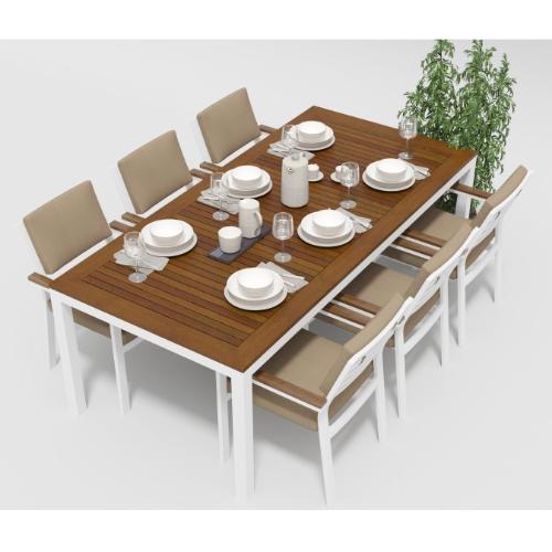 Цвет: каркас белый/подушки бежевые/столешница тик