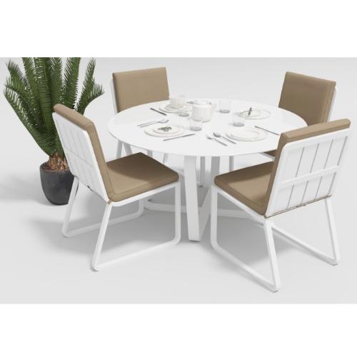 Цвет: каркас белый / подушки бежевые / столешница белая глянцевая