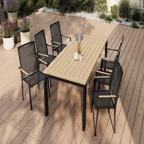 Обеденный комплект Brafritid Lyon-Andy 220A+6N антрацит/натуральный, алюминий/тик