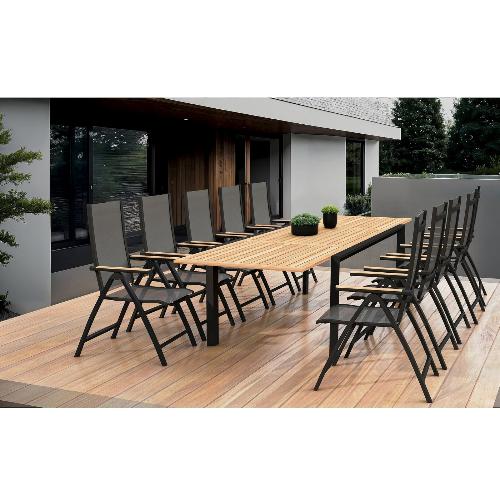 Обеденный комплект Brafritid Nora-Andy 10R антрацит/натуральный, алюминий/тик