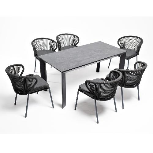 Обеденная группа 4SiS Венето на 6 персон со стульями Милан, каркас темно-серый, роуп темно-серый