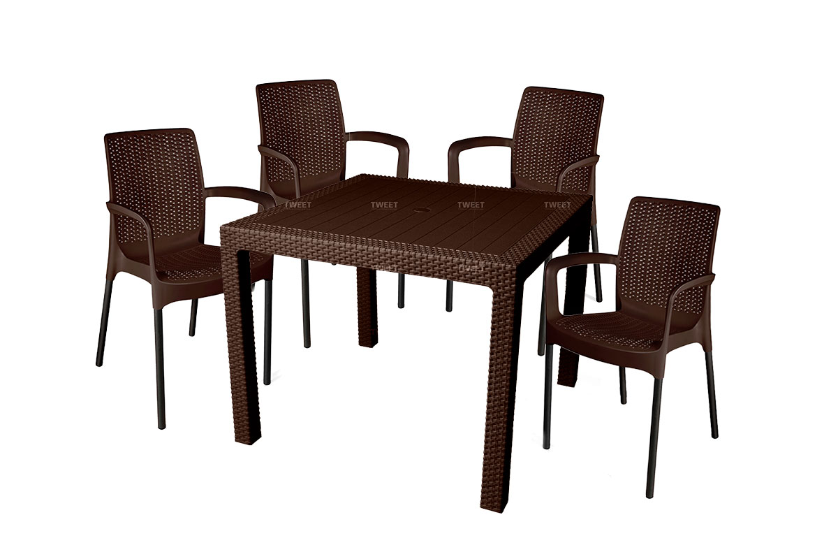 Комплект от российского производителя Gardeck включает 6 стульев с подлокотниками, металлическими ножками и 1 обеденный стол, идеально подойдёт для оформления садового участка, позволяет с комфортом разместиться Вам и Вашим гостям на террасе или балконе в количестве 6 человек.