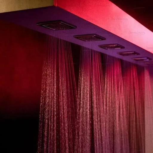 Теплый водопад и теплый поток при красном освещении, слышится