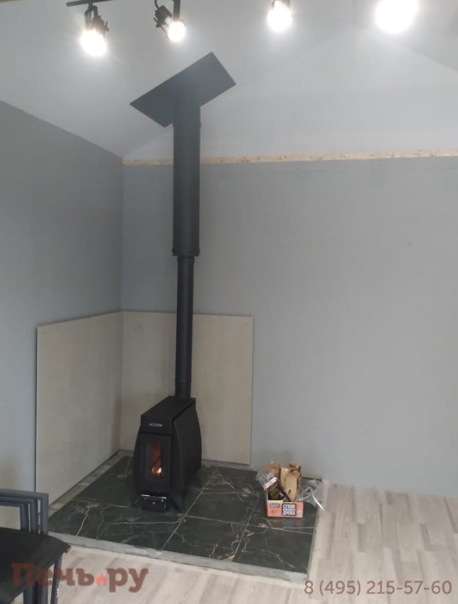 Из нержавеющей жаростойкой стали с чугунной дверью, глиняные изразцы конвектора.