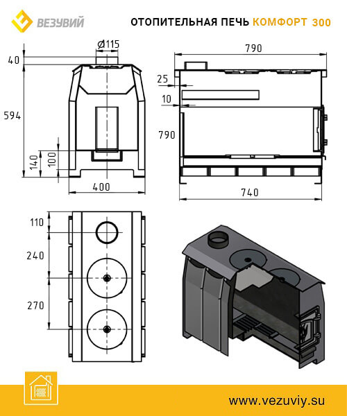 Инструкции, чертежи, документы - Отопительная печь Везувий Комфорт 300 (ДТ-3С)
