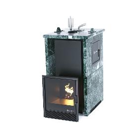 Банная печь ИзиСтим Сочи-М2 в трёхстороннем кожухе из змеевика