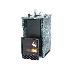 Банная печь ИзиСтим Сочи в трёхстороннем кожухе из змеевика