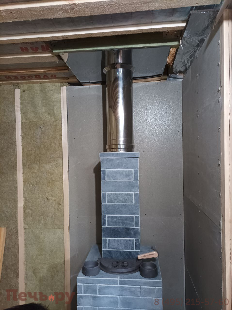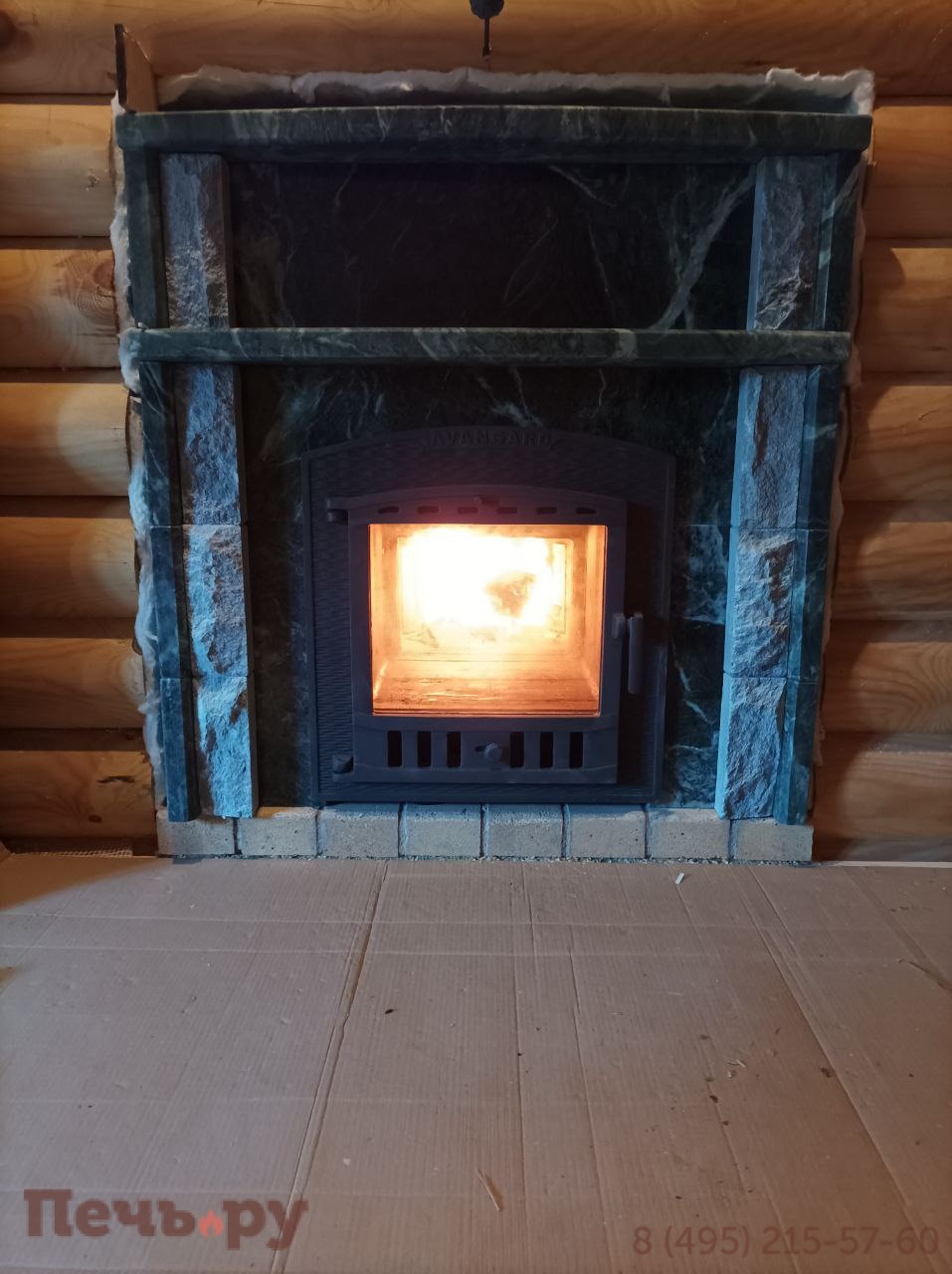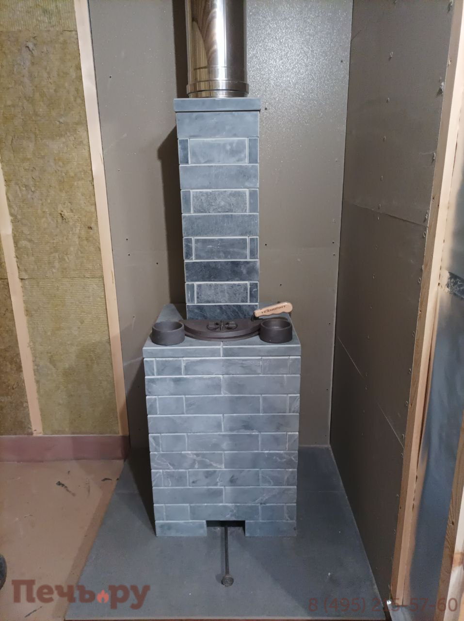 Облицовка из ламелей змеевик, материал корпуса - чугун ЧХ-1. Колосник, зольник, паровая пушка, выносной туннель, режимы - русская баня, сауна, хамам.