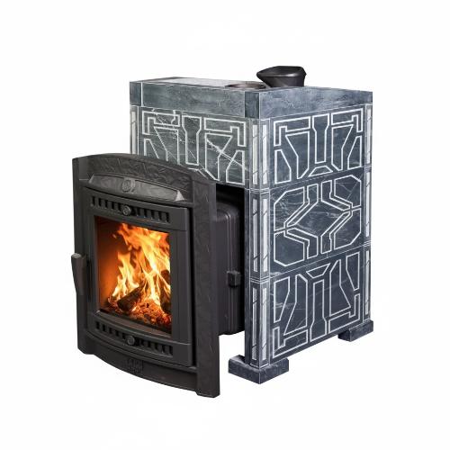 Печь банная Прометалл Атмосфера L в облицовке Талькохлорит узор №7