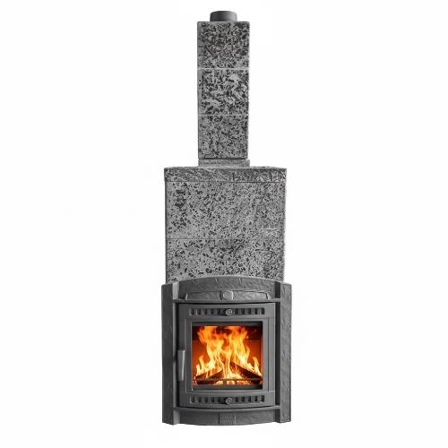 • Закрытая каменка, расположенная внутри топки позволяет провести нагрев камней до очень высоких температур. Камни находятся внутри корпуса каменки и нагреваются непосредственно пламенем равномерно со всех сторон.