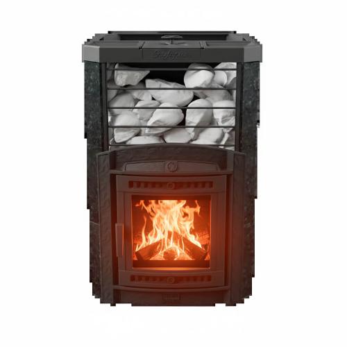 Топка рассчитана на дрова максимального размера до 50 см, что увеличивает продолжительность горения, снижая частоту загрузки топлива.Литая закрытая каменка из нержавеющей стали