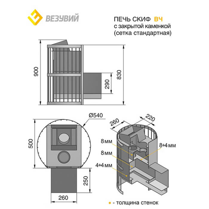 Инструкции, чертежи, документы - Печь Везувий Скиф с закрытой каменкой (ДТ-4)