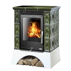 Кафельная печь ABX Helvetia KPI, с допуском воздуха, белый цоколь (зеленый)