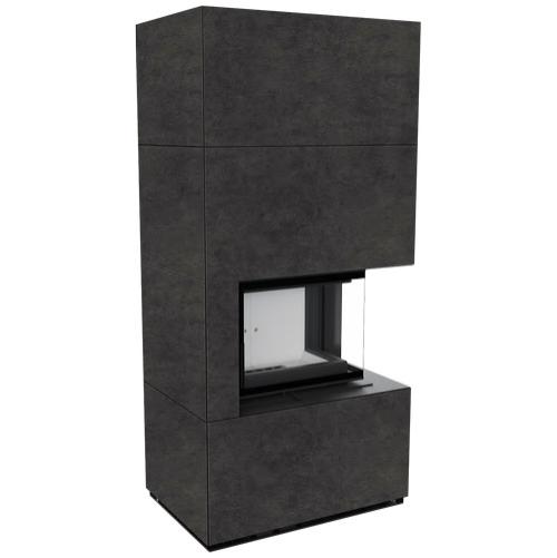 Каминокомплект Kratki Pro Floki в облицовке Fokos Grafite, угловое стекло справа (светлая футеровка)