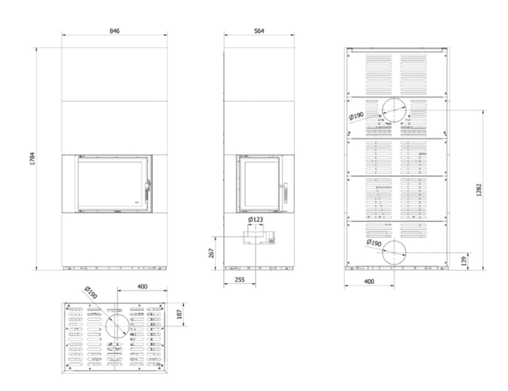 высота: 1784 мм, ширина: 846 мм, глубина: 566 мм.