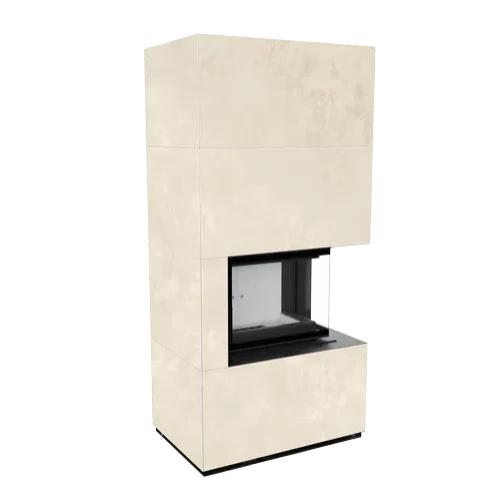 Каминокомплект Kratki Pro Floki в облицовке Fokos Sale, угловое стекло справа (светлая футеровка)