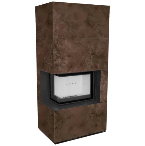 Каминокомплект Kratki Pro Floki в облицовке Oxide Moro, угловое стекло слева (светлая футеровка)