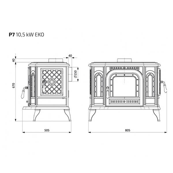 Инструкции, чертежи, документы - Печь камин Kaw-Met P7 10.5 kW LB Eko