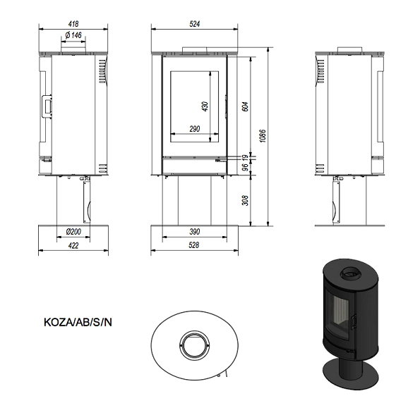 Инструкции, чертежи, документы - Печь камин Kratki Koza/AB/S/N/DR