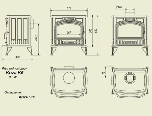 Инструкции, чертежи, документы - Печь камин Kratki Koza K6 (130 мм)