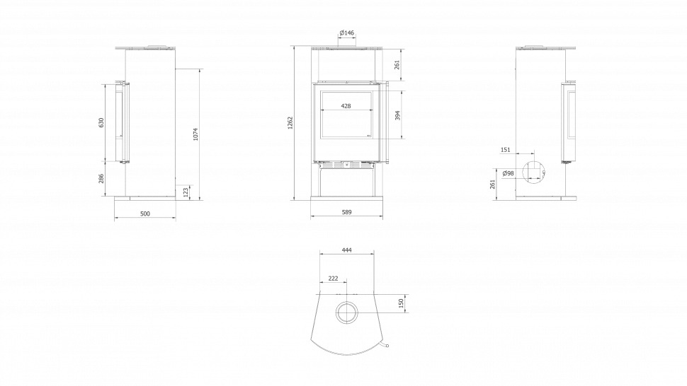 высота: 1262 мм, ширина: 589 мм, глубина: 500 мм.