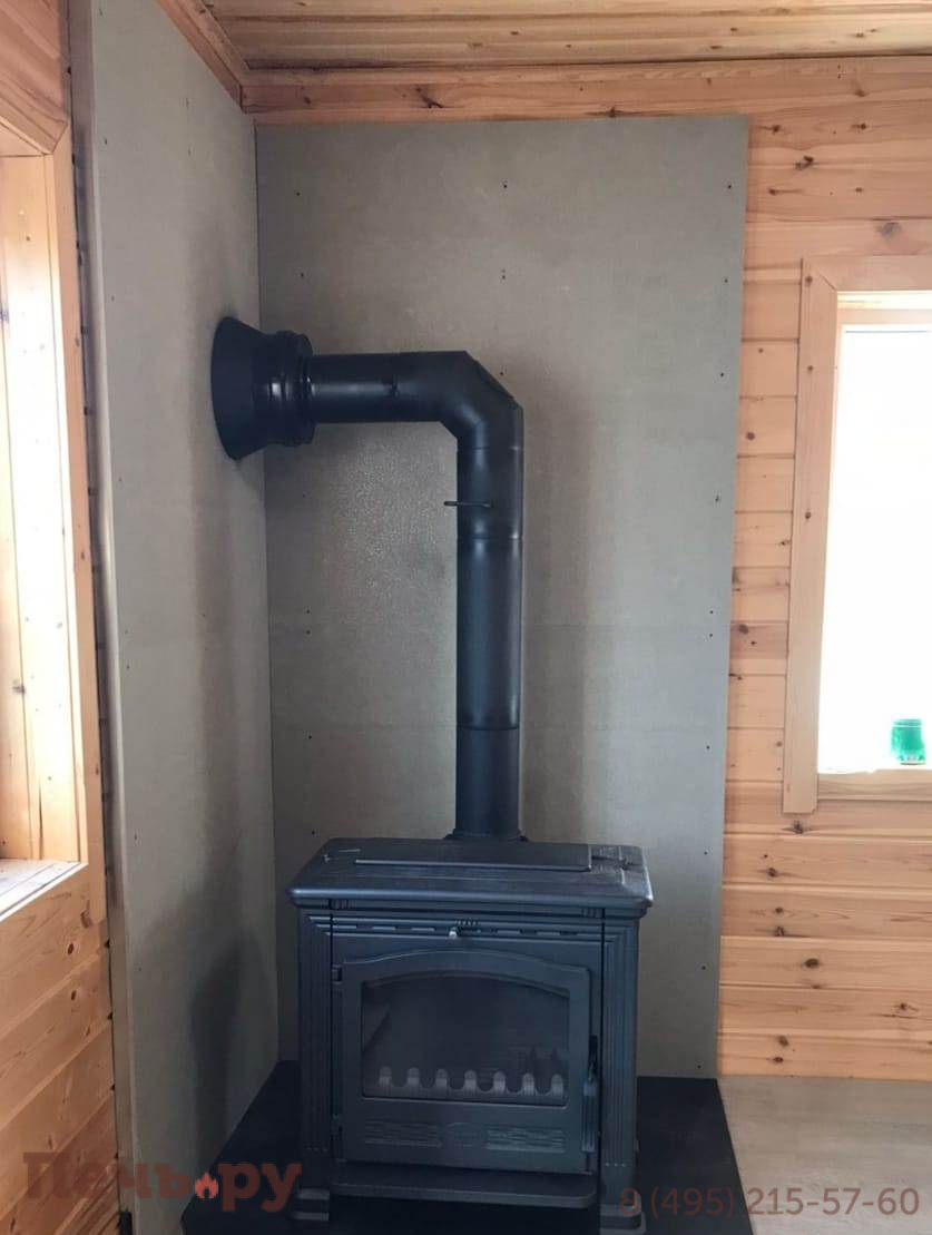 По умолчанию печь имеет верхнее подключение дымохода. При заднем подключении может понадобиться верхняя заглушка к печи. Приобретается отдельно.