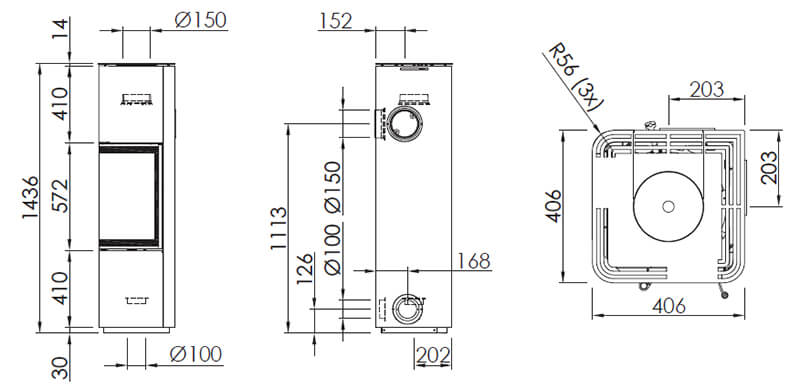 - Диаметр дымохода, мм 150