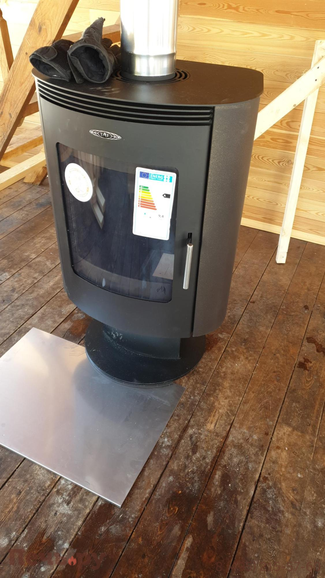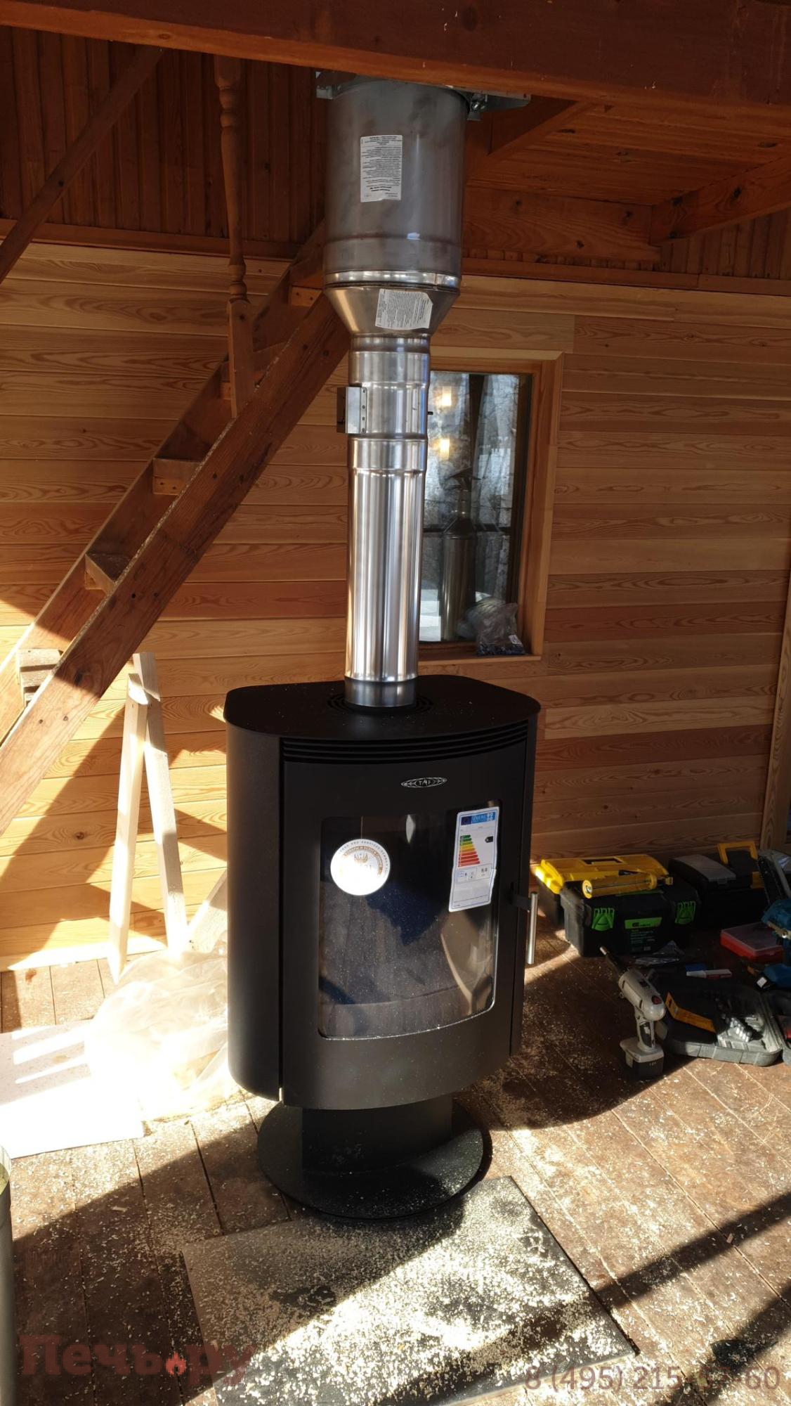 Еще не маловажно двойной зуб - т.е. пламя сначала огибает жаростойкий металлический свод, за ним стоит уже керамический и только после этого в трубу. Корпус печи не нагревается до опасных температур. Единственный минус для меня - при растопке приходиться минут 5-10 держать приоткрытой дверь. Но зато потом нельзя оторваться от чарующего огня. При длительном горении спокойно тлеет 4-5 часов, но тогда стекло сильно коптится. Приятным бонусом в моем случае оказалось, что камин еще и вращается вокруг оси. В общем рекомендую.
