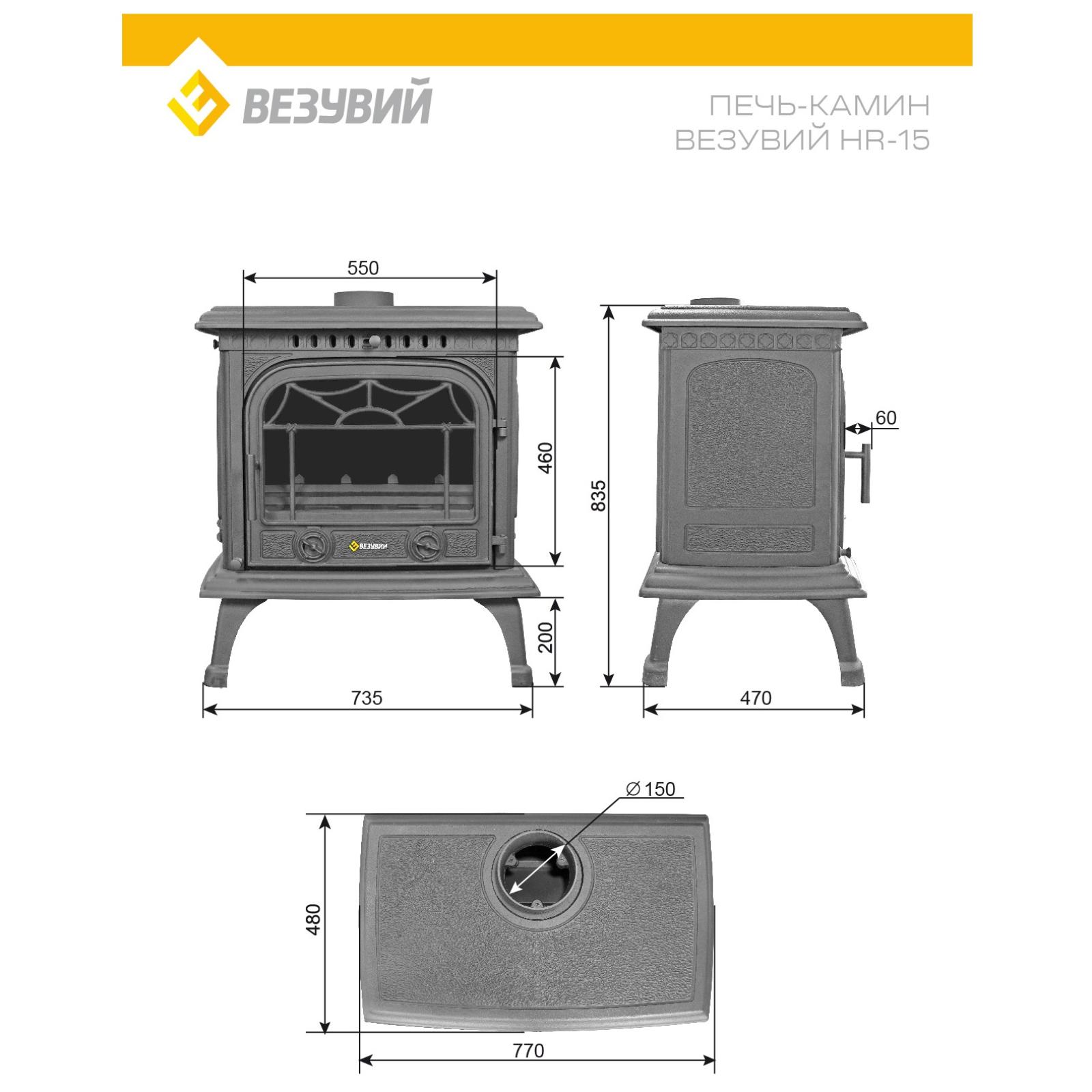 Инструкции, чертежи, документы - Печь камин Везувий HR-15 Антрацит