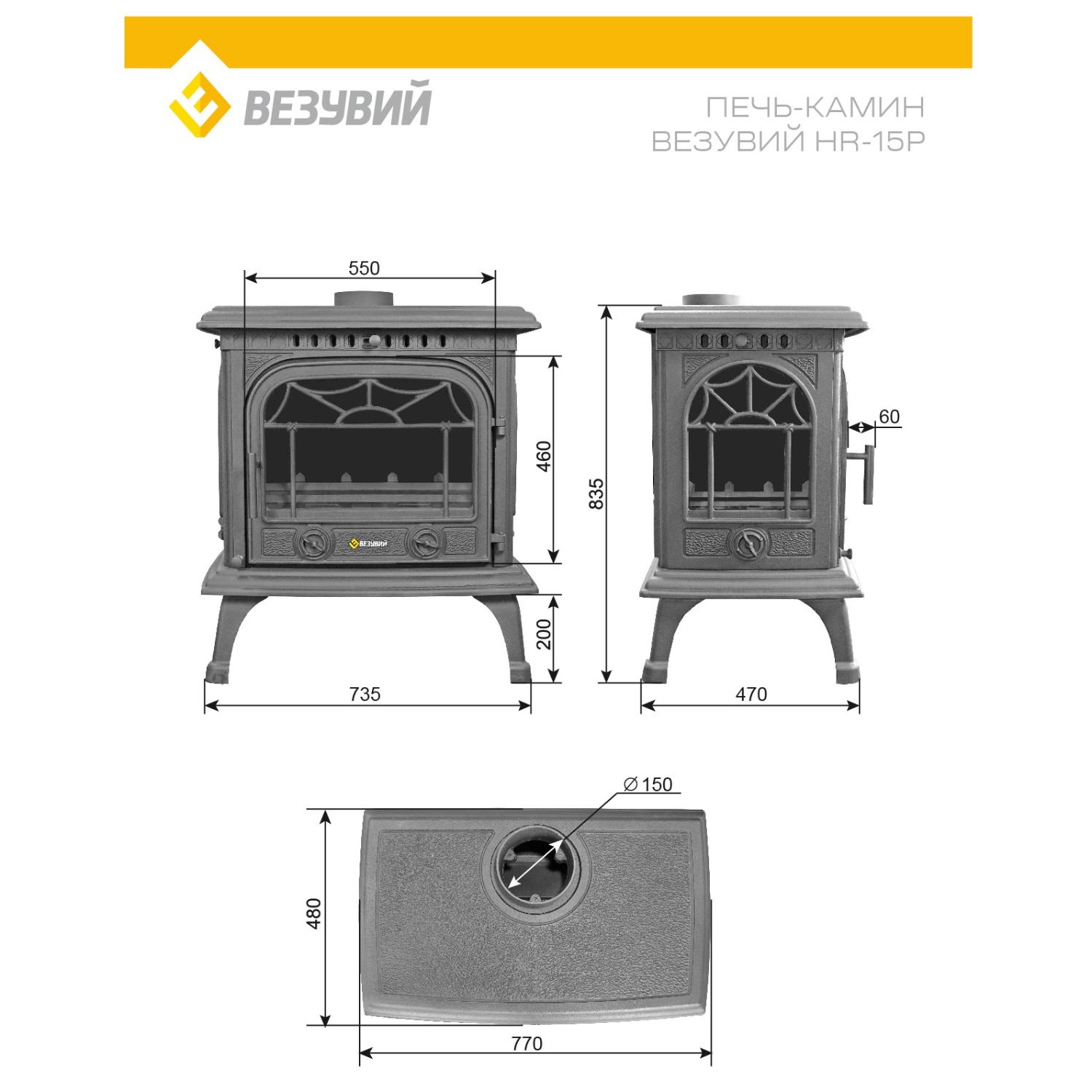 Инструкции, чертежи, документы - Печь камин Везувий HR-15Р Антрацит