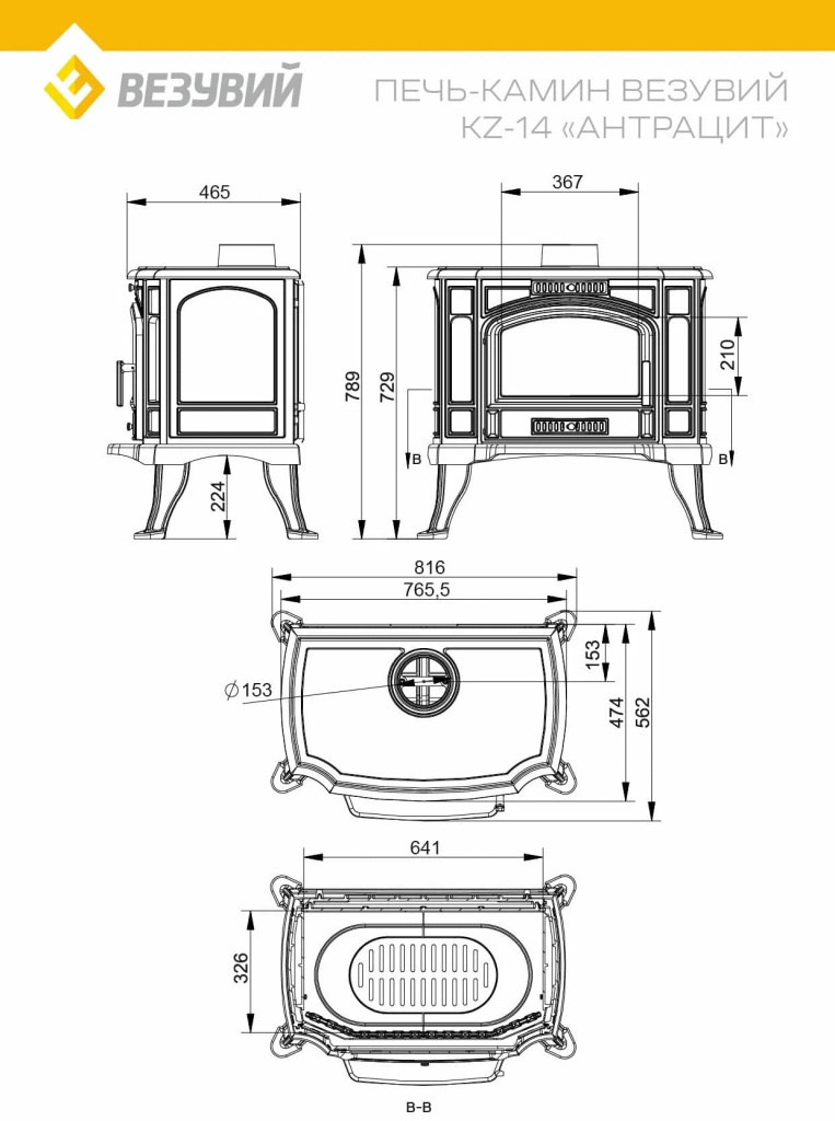 Инструкции, чертежи, документы - Печь-камин Везувий KZ-14 Антрацит