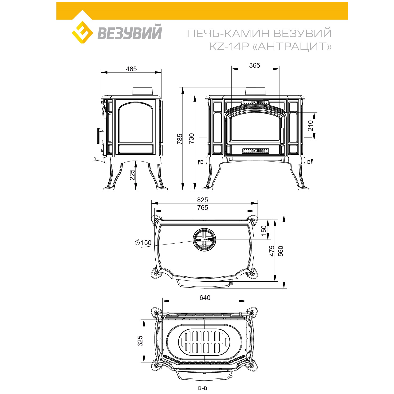 Инструкции, чертежи, документы - Печь камин Везувий KZ-14РS Антрацит