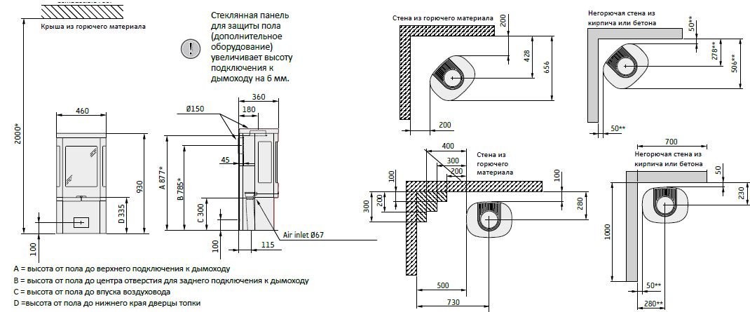 - Выход дымохода Сверху/Сзади