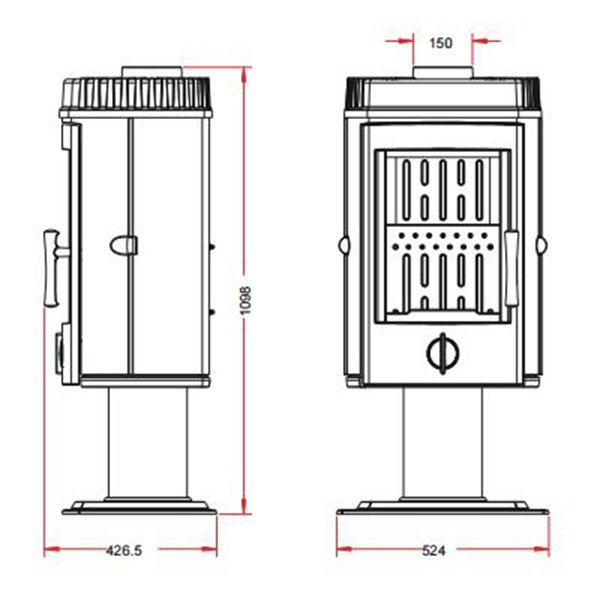 высота: 1098 мм, ширина: 524 мм, глубина: 427 мм.