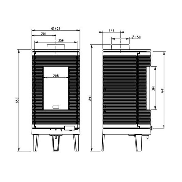 - Диаметр дымохода, мм 150