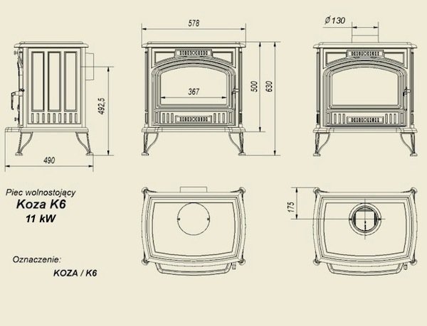 Инструкции, чертежи, документы - Печь камин Kratki Koza K6 термостат (150 мм)