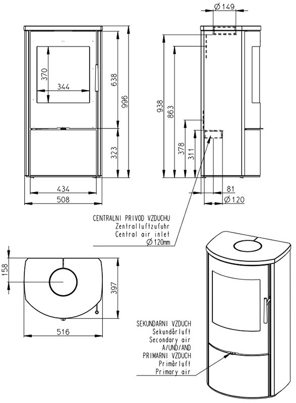 По умолчанию печь имеет верхнее подключение дымохода. При заднем подключении может понадобиться верхняя заглушка к печи. Приобретается отдельно.