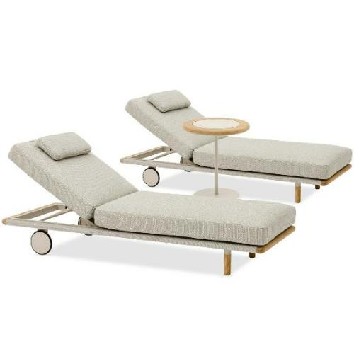 В комплект входит 2 лежака и столик.