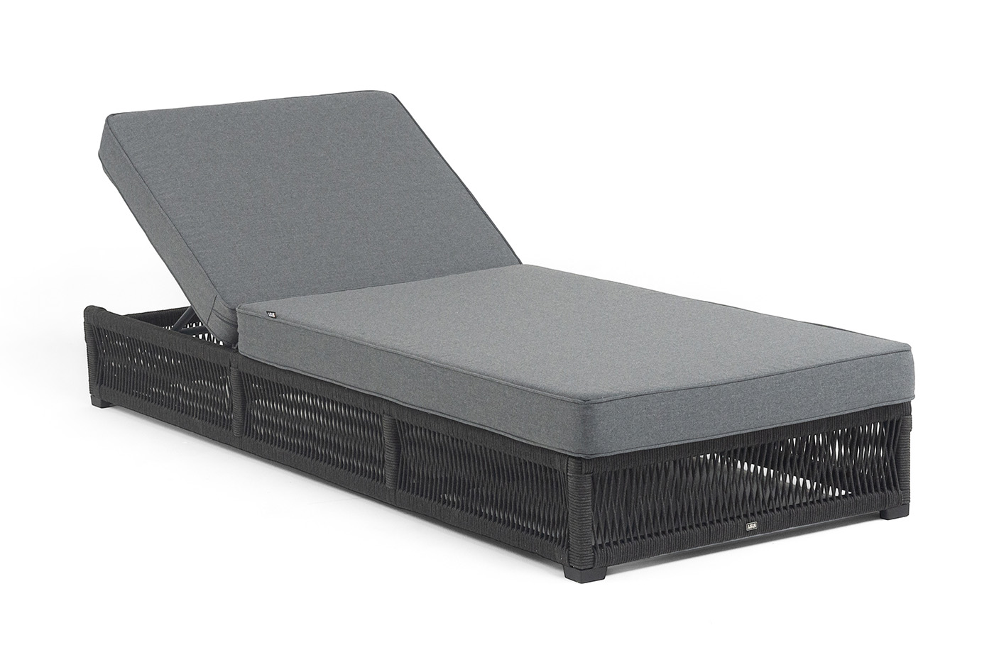 4SiS "Ривьера" шезлонг плетеный из роупа, каркас алюминий темно-серый (RAL7024) муар, роуп темно-серый круглый, ткань темно-серая 027