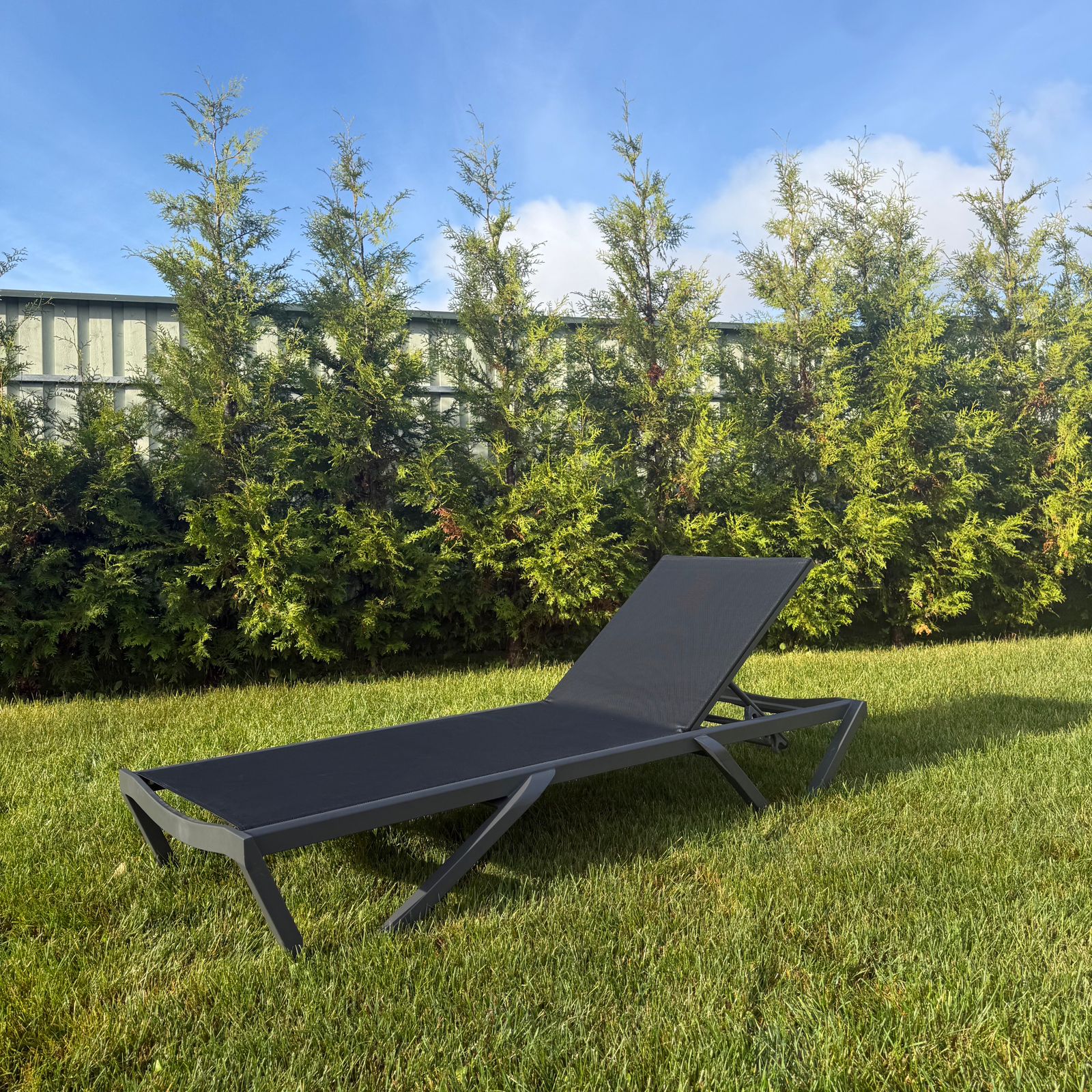 Каркас из высококачественного алюминия обеспечивает прочность и долговечность шезлонга, при этом оставаясь легким и устойчивым к погодным условиям. Материал сиденья — текстилен — отличается высокой износостойкостью, воздухопроницаемостью и простотой в уходе, благодаря чему вы сможете наслаждаться комфортом на протяжении многих сезонов.