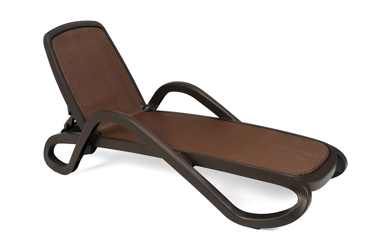 Элегантный шезлонг из высокопрочного пластика цвета кофе с мягкой обивкой из дышащей ткани trama caffe - стильное решение премиум класса от итальянских дизайнеров!