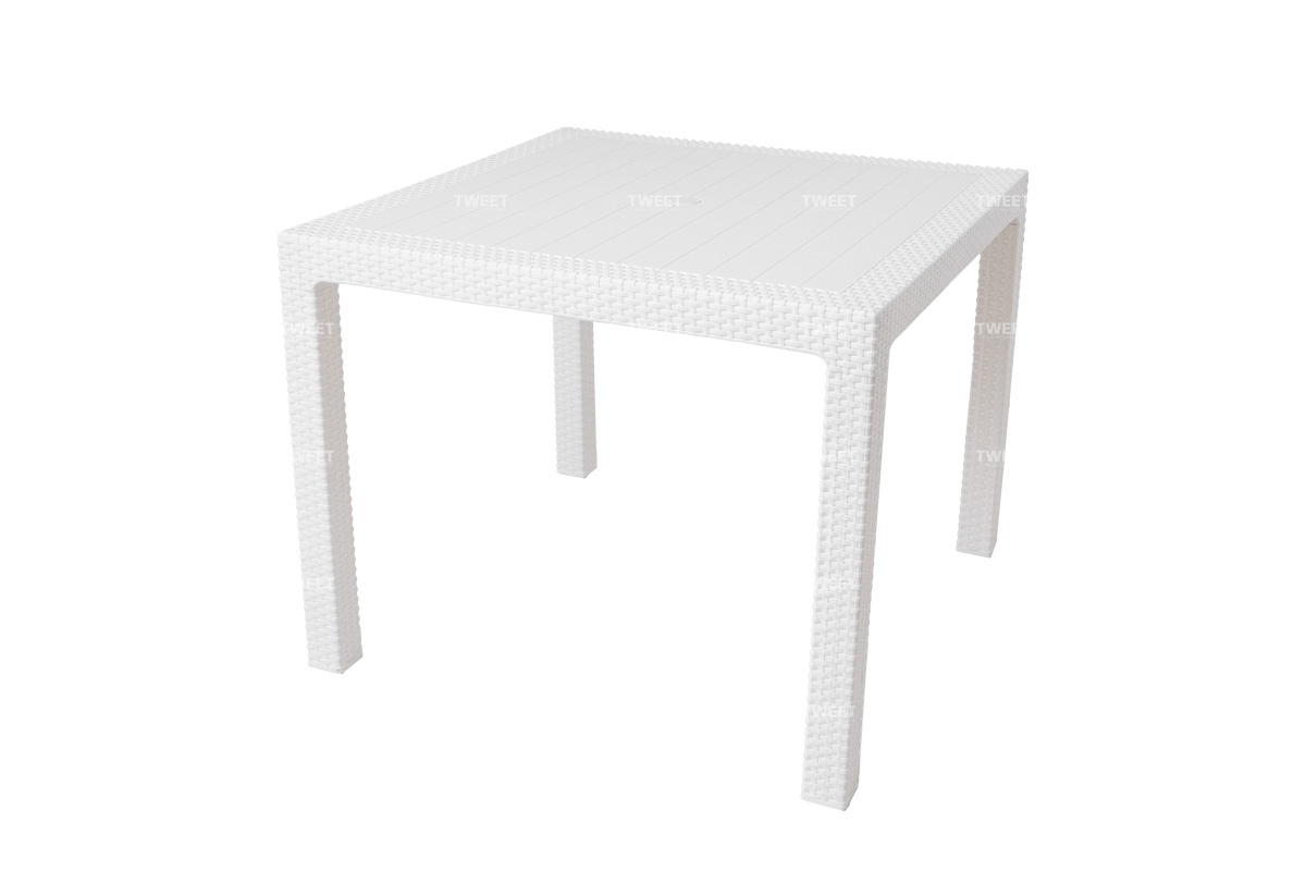 Пластиковый обеденный стол TWEET Quatro от российского производителя Gardeck на 4 персоны порадует любителей плетеной мебели своей фактурой в стиле ротанг.