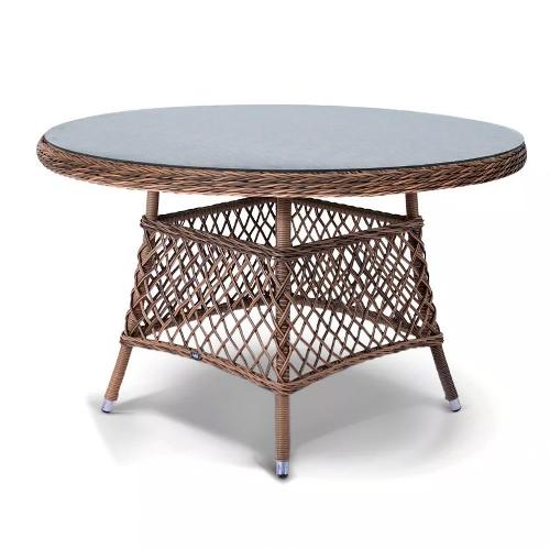 - Круглые столы из ротанга со стеклом