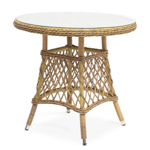 - Круглые столы из ротанга со стеклом