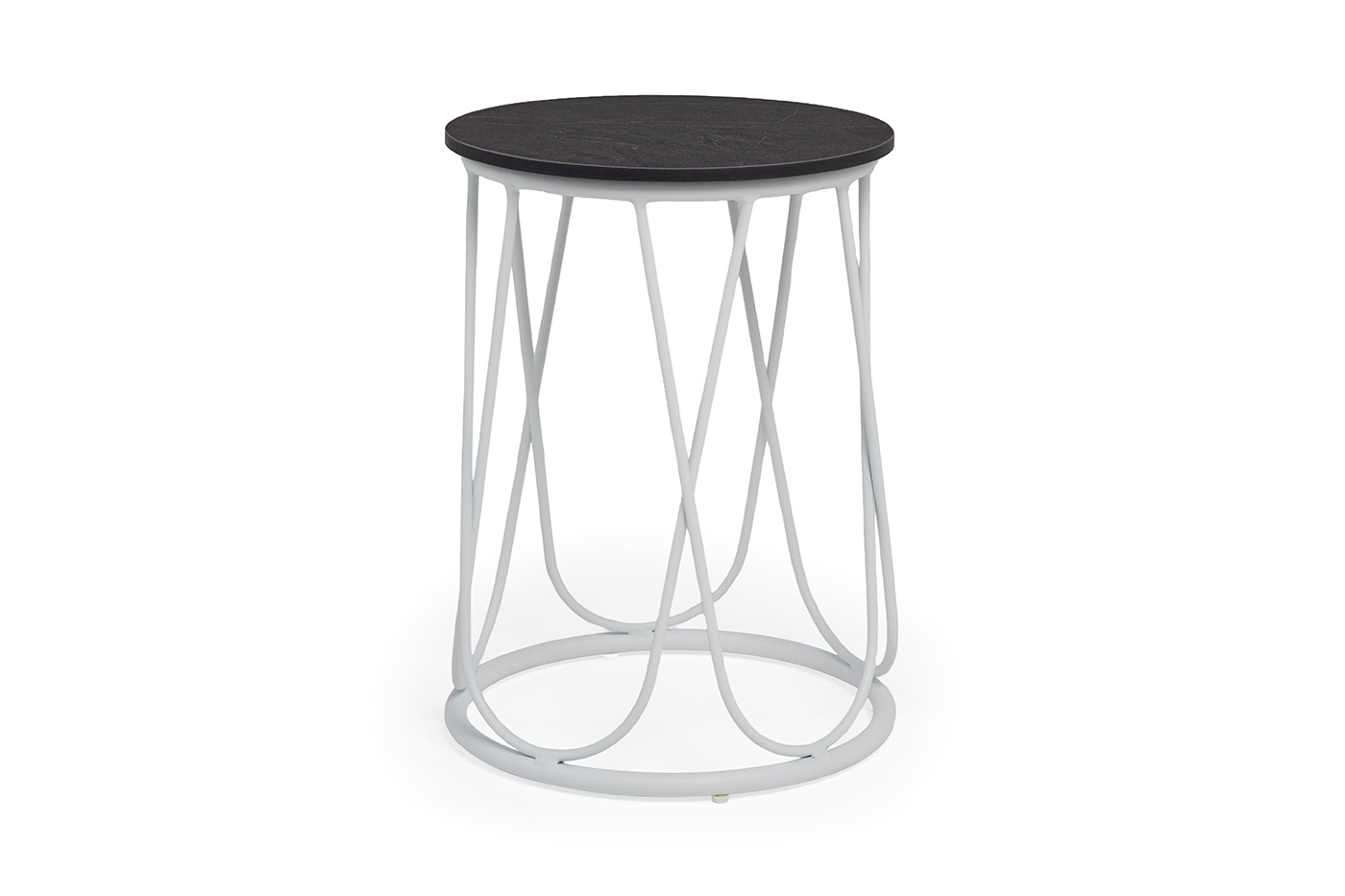 4SiS "Перу" журнальный стол из HPL круглый Ø40 H55, каркас из алюминия белый (RAL 9016) муар, цвет столешницы "серый мрамор"