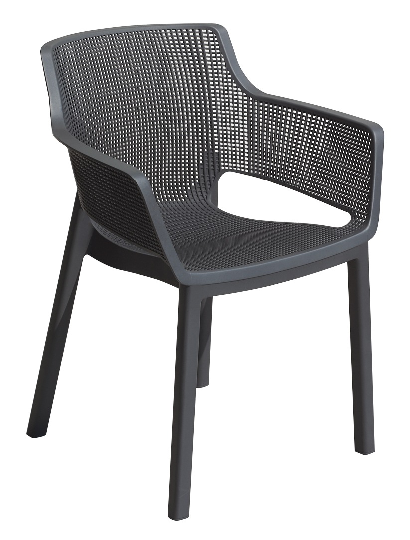 Elisa - это необыкновенно удобный стул с современным внешним видом. Профилированная спинка и сиденье, а также мягкая, округлая линия подлокотников - это несомненные преимущества этого продукта. Современная фактура сетки, легкая чистка и возможность вставки стульев друг в друга. Идеален для дома и сада.